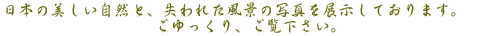 フォトギャラリー 写真 風景 旅 鉄道 立体写真 北海道 知床 摩周湖 利尻 羊蹄山 下北 恐山 十和田湖 奥入瀬 八甲田 八幡平 岩手山 猪苗代 磐梯 五色沼 富士 草津 雲仙 池田湖 開聞岳 津軽 弘前 岩木山 恐山 龍飛 永平寺 忍野 妻籠 かずら橋 高知 野良時計 尾小屋鉄道 下津井電鉄 蒲原鉄道 新潟交通 越後交通 津軽鉄道 南部縦貫鉄道 鹿児島交通 立体写真、ステレオ写真